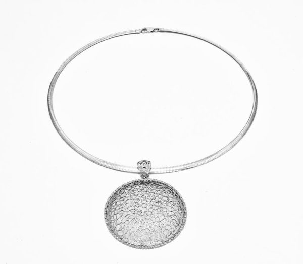 A simple round pendant with an “abstract” filigree pattern, pendant only.