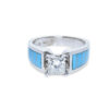 A 1ct. weight Princess Cut Diamond sets off this gold ring. The band features Sleeping Beauty Turquoise inlay.